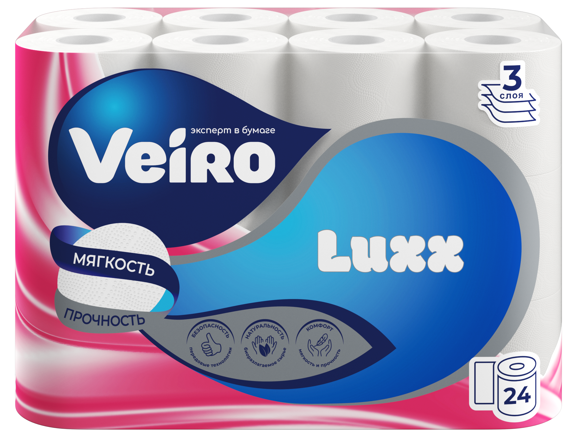 Позвольте себе роскошь ежедневного уюта с туалетной бумагой Veiro Luxx. Наслаждайтесь идеальной мягкостью и нежностью, которые делают каждый момент более комфортным – и всё это по демократичной цене, которая приятно удивит.