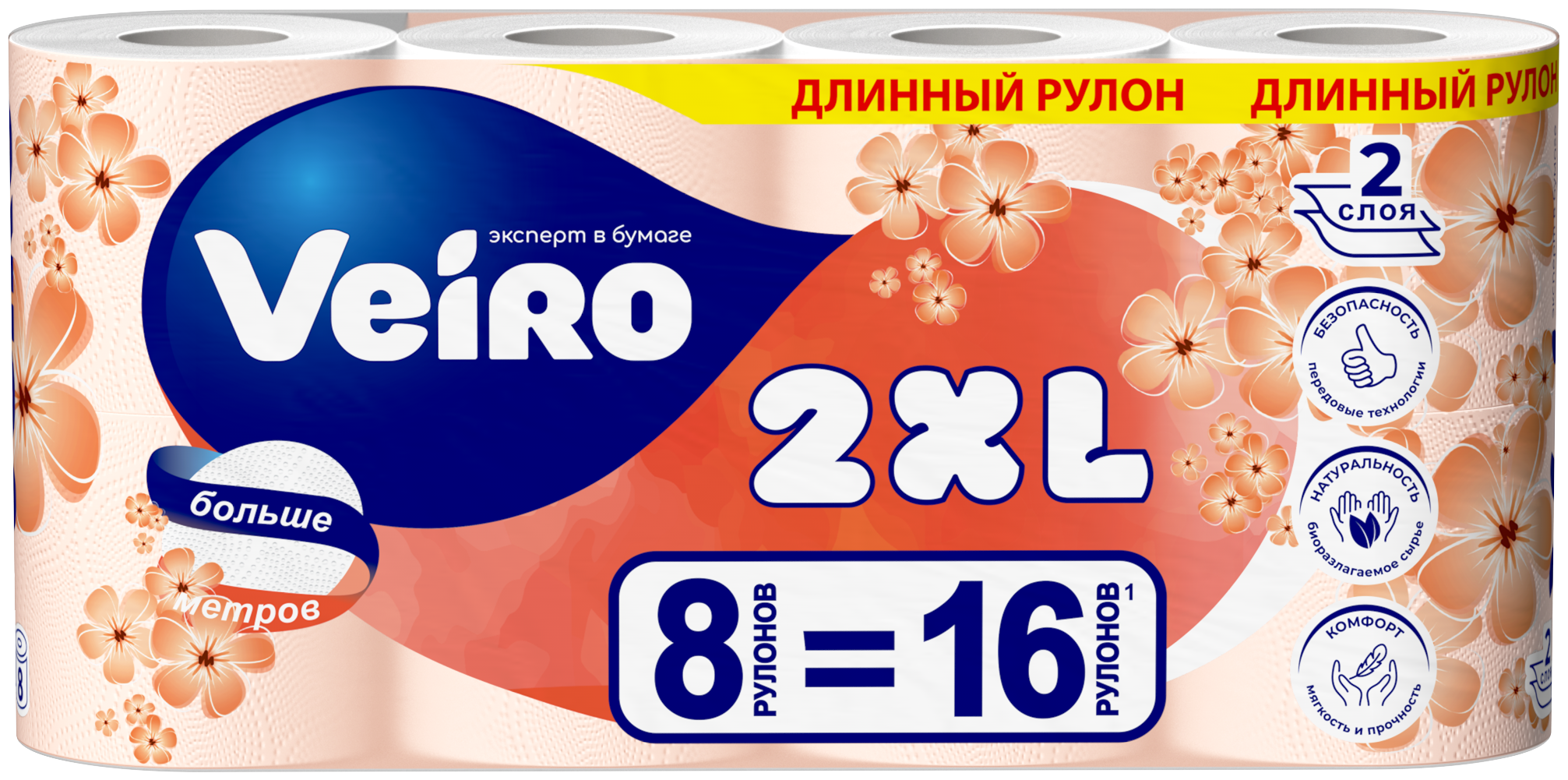 Забудьте о частой смене рулонов – Veiro 2XL предлагает увеличенную длину, благодаря которой одной упаковки хватает надолго. Это не просто экономия, а настоящая забота о вашем удобстве.